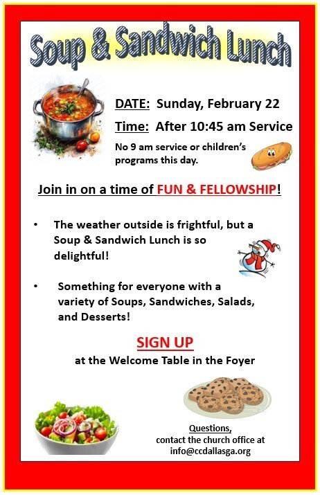 We will start the morning with breakfast together at 9 a.m. then separate and gather to study the Word. The women will begin studying through the Book of Genesis and the men will continue their study through the Book of 2 Peter. If you are joining us, we would love for you to bring something for breakfast to share. If you have any questions, please contact our church office at info@ccdallasga.org.